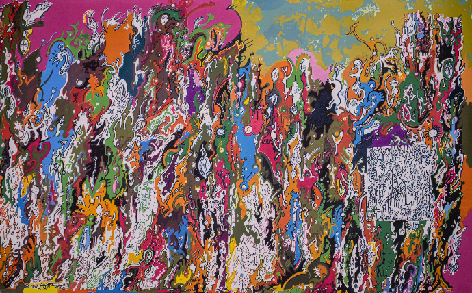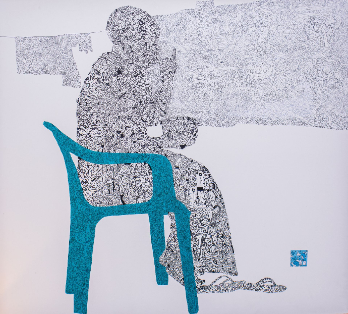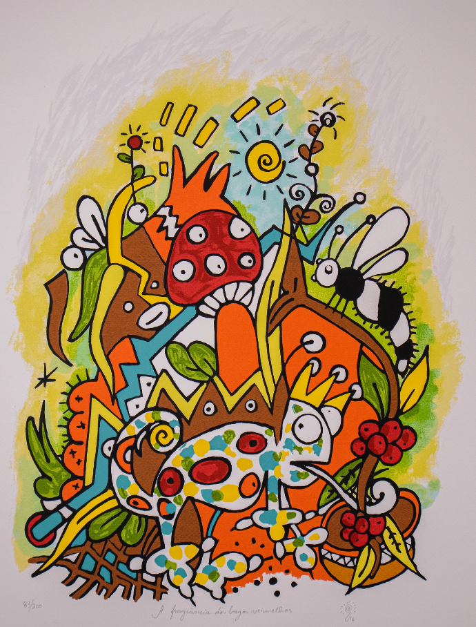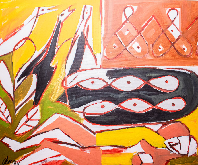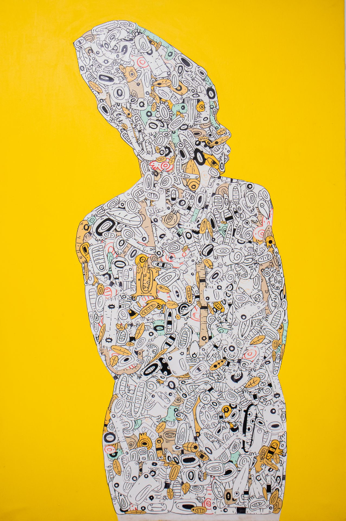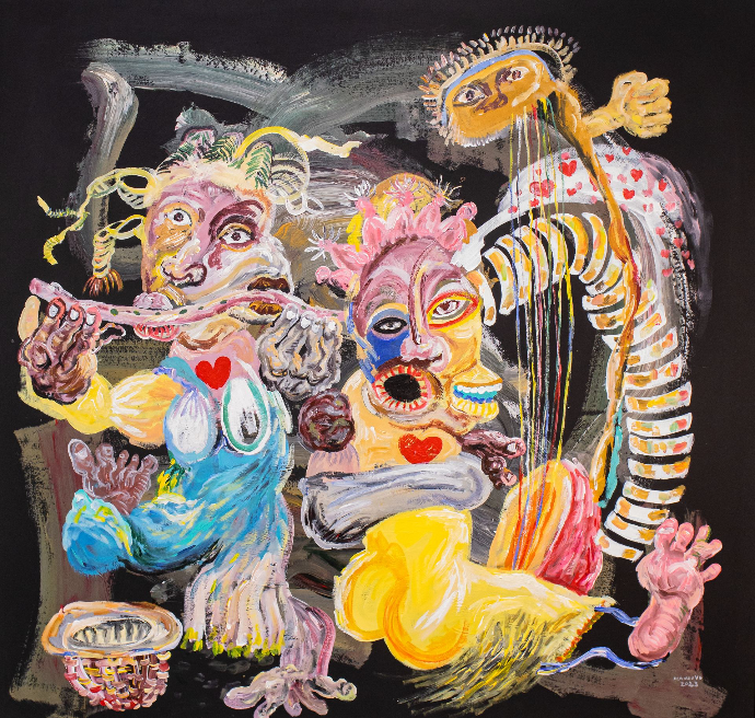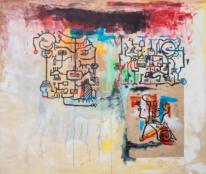 Técnica de pintura usada: Acrílica e marcador sobre tela