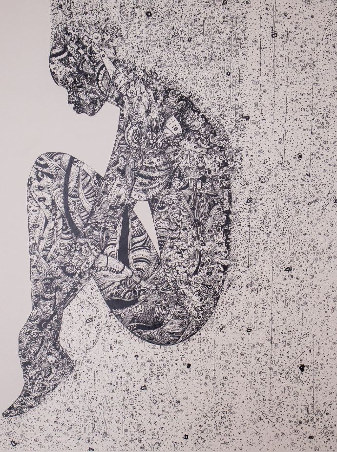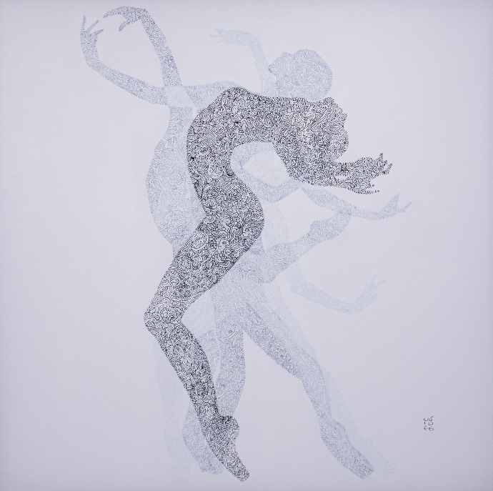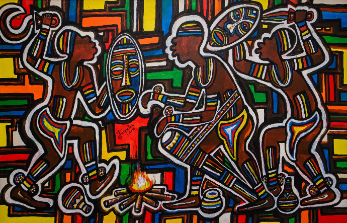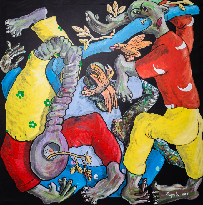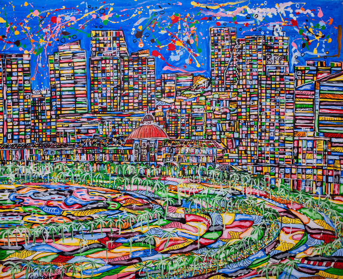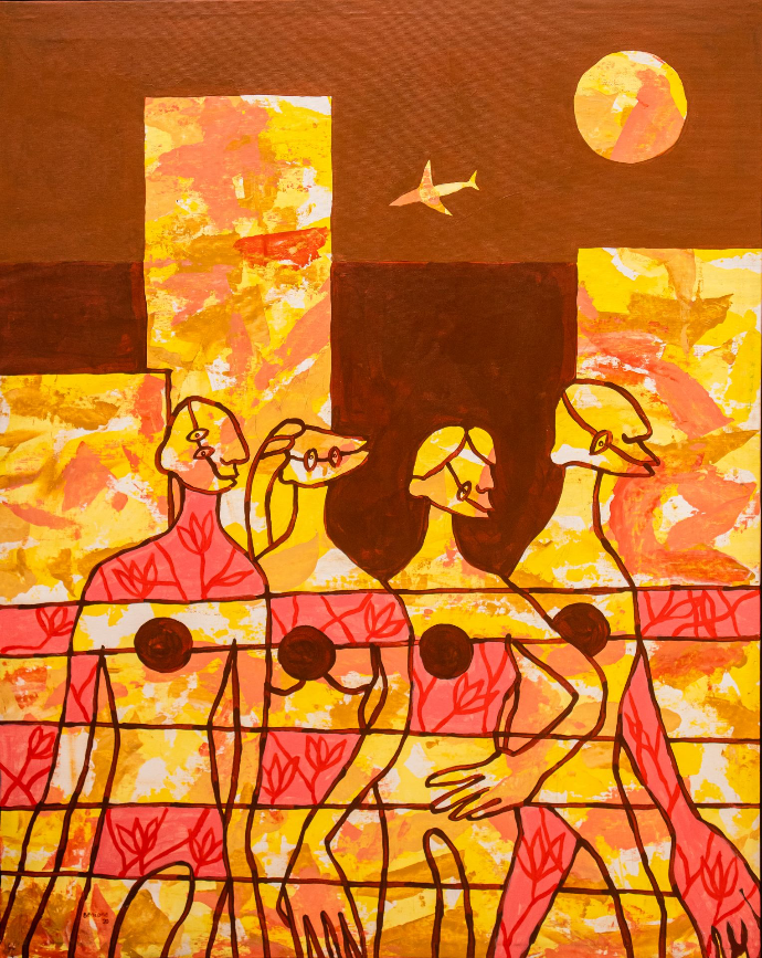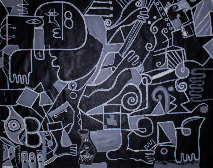 Técnica de pintura usada: Acrílica e marcador sobre tela