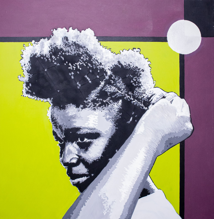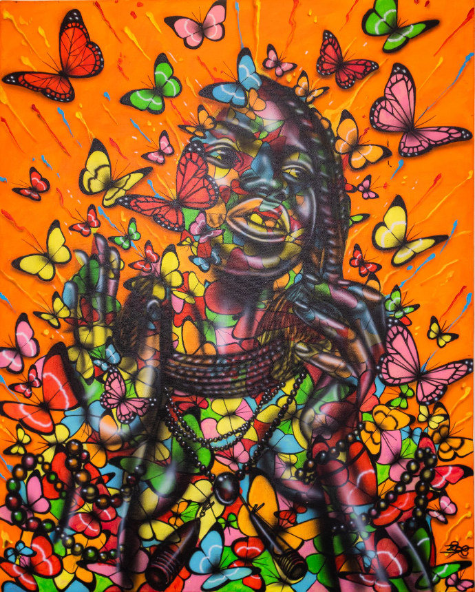 Técnica de pintura usada: stencil, spray e acrílico s/ tela