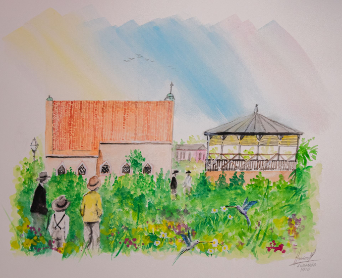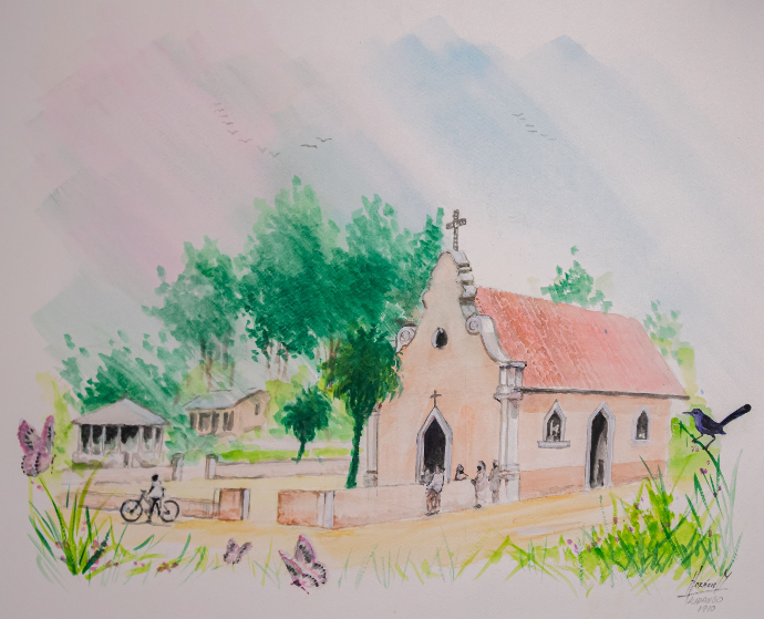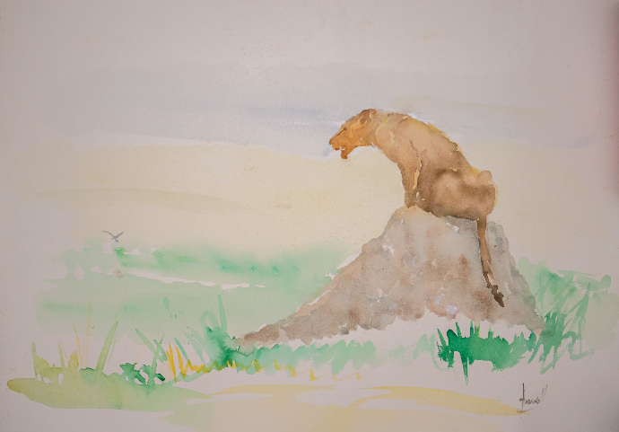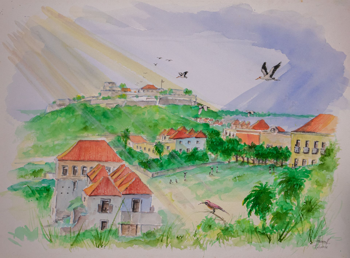 Técnica de pintura usada: Desenho e aguarela s/ papel